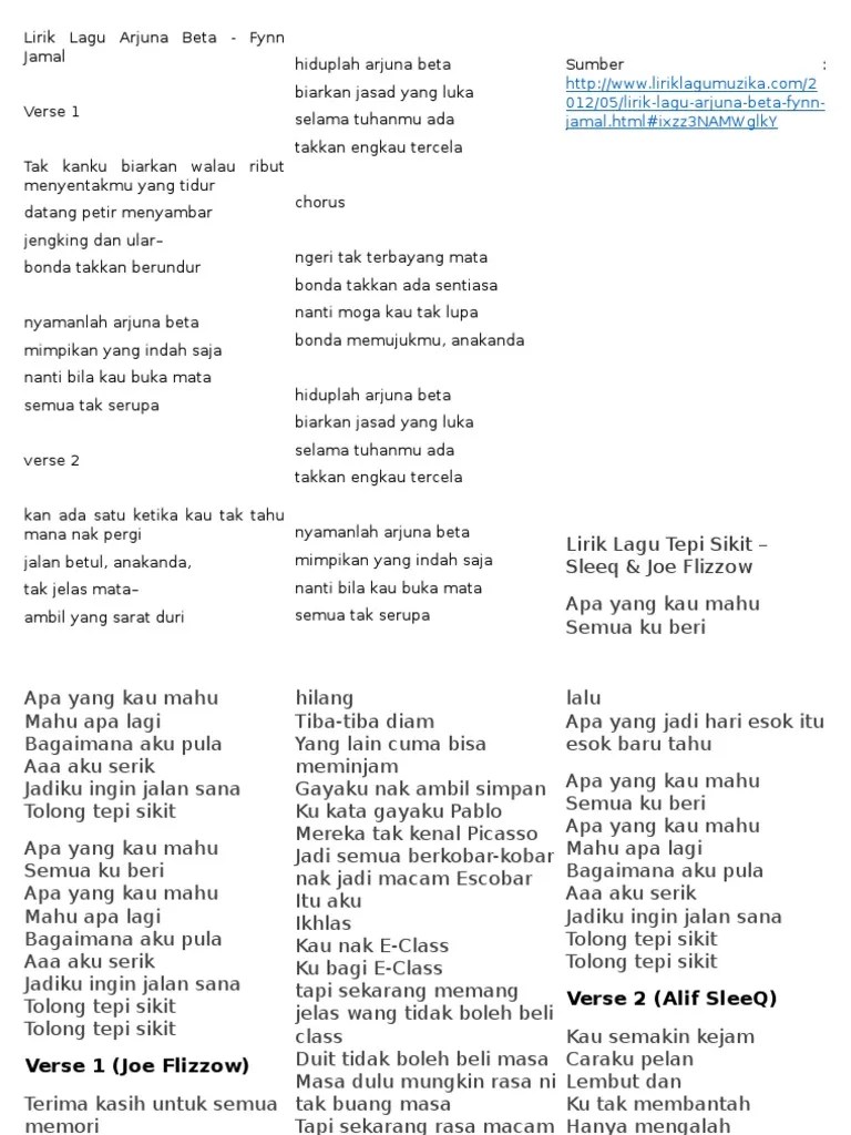 Lirik Lagu Arjuna Beta : 1 Lirik Arjuna Beta Fynn Jamalsumijelly Weblog : Hari sabtu yang sunyi sepi ni buat entri pun malas.